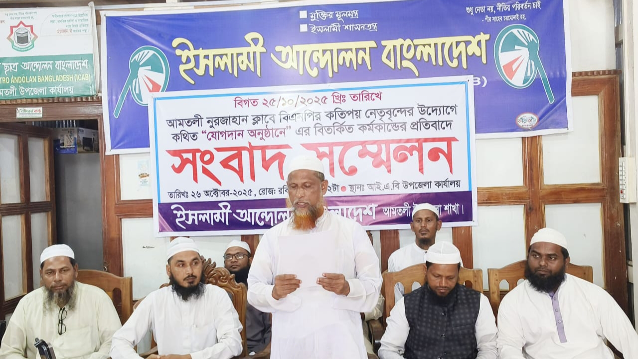 ইসলামী অন্দোলনের সংবাদ সম্মেলন আমতলী উপজেলা ইসলামী আন্দোলন থেকে তিন’শ নেতা কর্মীর বিএনপিতে যোগ দেওয়ার তথ্য সঠিক নয়