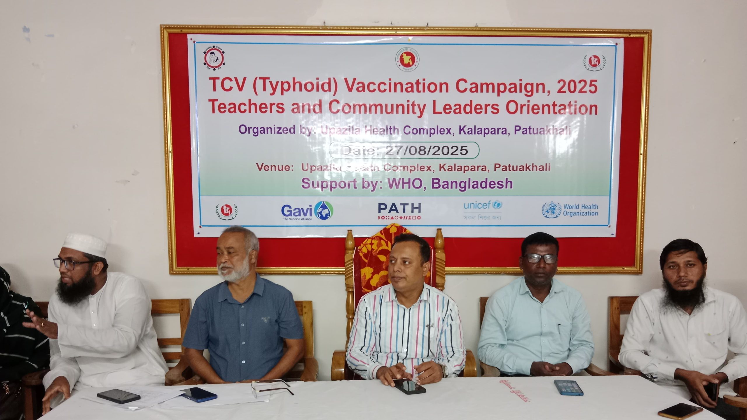 মোয়াজ্জেম হোসেন, কলাপাড়া (পটুয়াখালী) প্রতিনিধি।। পটুয়াখালীর কলাপাড়ায় শিক্ষক নেতৃবৃন্দের টাইফয়েড ভ্যাকসিনেশন ক্যাম্পেইন বিষয়ক ওরিয়েন্টেশন ২০২৫ অনুষ্ঠিত হয়েছে। বুধবার(২৭ আগস্ট) বিকাল ৩টায় কলাপাড়া উপজেলা স্বাস্থ্য কমপ্লেক্সে আয়োজিত স্বাস্থ্য কমপ্লেক্সে হলরুমে এ সভা অনুষ্ঠিত হয়। বিশ্ব স্বাস্থ্য সংস্থা বাংলাদেশ, গাভী, পাথ এবং ইউনিসেফ এর সমর্থনে উপজেলা স্বাস্থ্য ও পরিবার পরিকল্পনা কর্মকর্তা ডা. শংকর প্রসাদ অধিকারীর