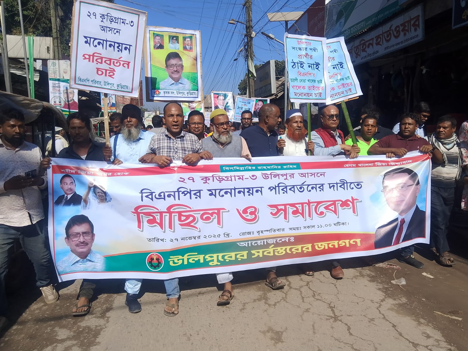 কুড়িগ্রাম-৩ আসনে বিএনপির মনোনীত প্রার্থী পরিবর্তনের দাবিতে সড়ক অবরোধ করে বিক্ষোভ