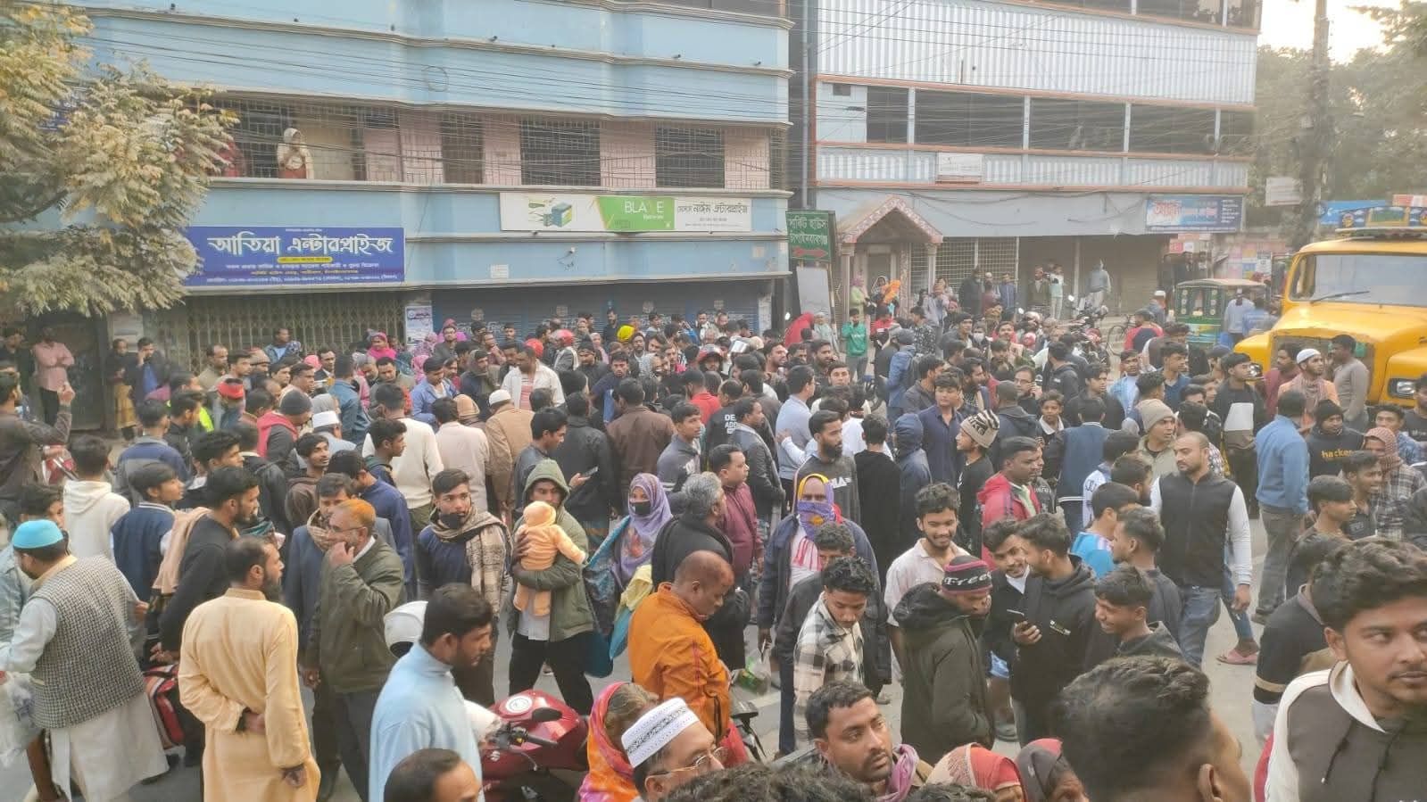 এ সময় বিক্ষুব্ধ এলাকাবাসী সড়ক অবরোধ করলে যানবাহন চলাচল বন্ধ হয়ে যায়। এক পর্যায়ে বিক্ষুব্ধ জনতা বিশ্বরোড মোড়ে ট্রাফিক পুলিশ বক্স ভাঙচুর করে একটি মোটরসাইকেল ও বক্সের আসবাবপত্রে আগুন দেয় এছাড়াও সদর পুলিশ ফাড়িতে হামলা চালিয়ে ভাংচুর করা হয়, এই নিউজ লিখা পর্যন্ত পুলিশ সুপারের কার্যালয়ে হামলা চালাই একদল যুবক।