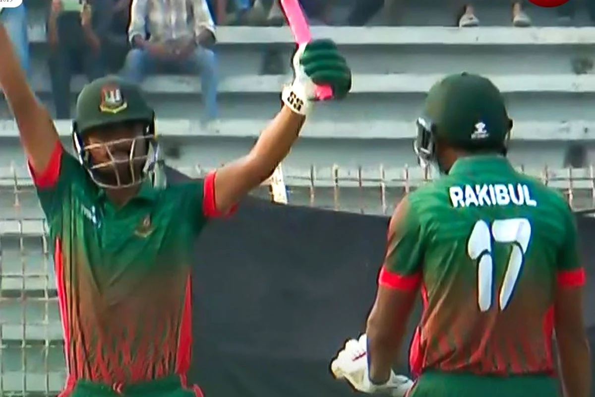 তিন ম্যাচ সিরিজে ১-০ ব্যবধানে এগিয়ে গেল বাংলাদেশ ইমার্জিং দল। দক্ষিণ আফ্রিকার বিপক্ষে দুর্দান্ত এক জয় দিয়ে তিন ম্যাচের ওয়ানডে সিরিজ শুরু করেছে বাংলাদেশ ইমার্জিং দল। সোমবার রাজশাহীতে দক্ষিণ আফ্রিকা ইমার্জিং দলের বিপক্ষে প্রথম ম্যাচে ৩ উইকেটের শ্বাসরুদ্ধকর জয় পেয়েছে আকবর আলীর নেতৃত্বাধীন দলটি। জয়ের লক্ষ্যে ৩০২ রান তাড়া করতে নেমে দুই বল হাতে রেখেই জয় নিশ্চিত করেন। এর আগে টস জিতে ব্যাট করতে নেমে দক্ষিণ আফ্রিকা ইমার্জিং দল দুইটি হাফ-সেঞ্চুরিতে ভর করে ৮ উইকেটে ৩০১ রানের বড় সংগ্রহগড়ে।