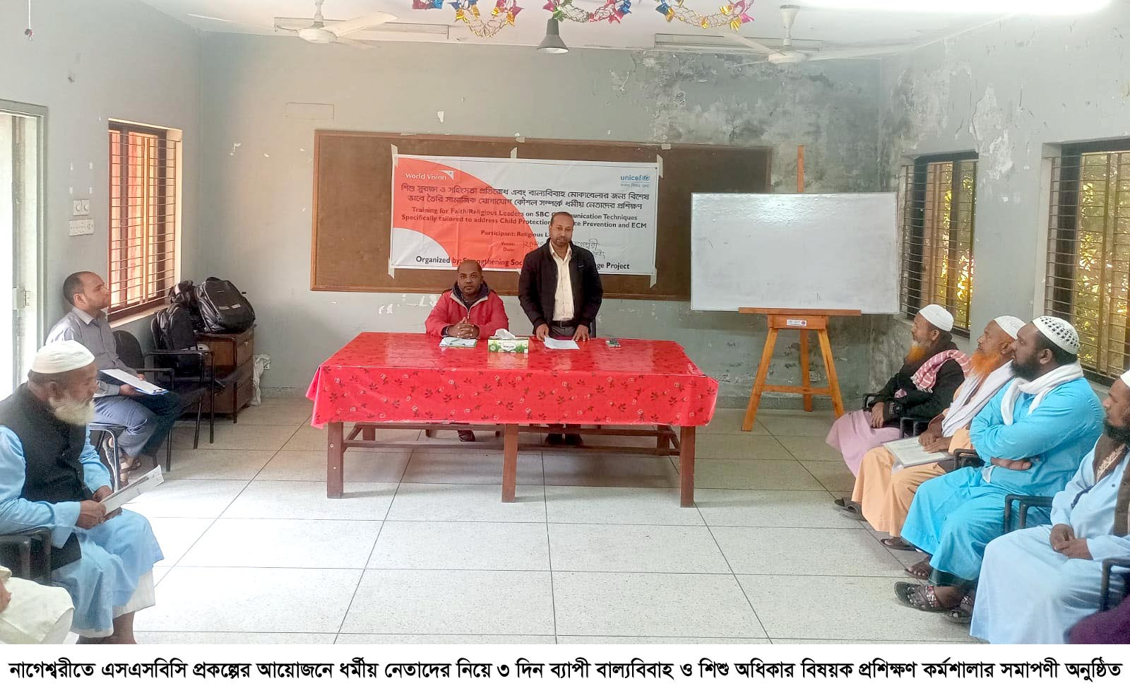 শিশু সুরক্ষা ও সহিংসতা প্রতিরোধ এবং বাল্যবিবাহ মোকাবেলার জন্য বিশেষ ভাবে তৈরি সামাজিক যোগাযোগ কৌশল সম্পর্কে ধর্মীয় নেতাদের নিয়ে ৩ দিনব্যাপী প্রশিক্ষণে প্রধান অতিথি হিসেবে উপস্থিত ছিলেন- নাগেশ্বরী উপজেলা সমাজসেবা কর্মকর্তা জামাল হোসাইন। প্রশিক্ষণে অন্যান্যদের মধ্যে উপস্থিত ছিলেন- নাগেশ্বরী মন্ডলটারী জামে মসজিদের খতিব আঃ রহমান, হাজী পাড়া জামে মসজিদের খতিব মোঃ আব্দুল আউয়াল, ব্যাপারীটারী জামে মসজিদের ইমাম রেজাউর করিম, ডারার পাড় জামে মসজিদের ইমাম নুরুজ্জামান প্রমূখ।