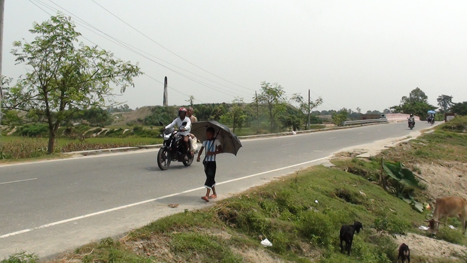 উপজেলায় গত কয়কদিন যাবৎ সকাল থেকে বিকেল পর্যন্ত প্রচণ্ড রোদ এবং ভ্যাপসা গরমে নাজেহাল খেটে খাওয়া দিনমজুর সহ সর্বস্তরের মানুষজন। তীব্র তাপপ্রবাহে কোথাও স্বস্তি মিলছে না। একটু স্বস্তি পেতে মানুষজন রাস্তার পাশে আখের রসের দোকানে ভিড় জমাচ্ছে। প্রচণ্ড গরম সহজ করতে না পেরে পুকুর ও সেচ পাম্পের পানিতে গোসল করতে শিশু-কিশোরসহ অনেকে দেখা যাচ্ছে। এদিকে প্রচণ্ড গরমে হাত পাখার চাহিদা বেড়েছে। অনেকে সিলিং ফ্যানের পাশাপাশি হাতপাখা দিয়ে বাতাস করতে দেখা গিয়েছে। উপজেলার পৌর শহরের মানিক চন্দ্র রায় জানান, এমন প্রখর রোদ জীবনে দেখি নাই। গত কয়েকদিনে ধরে রোদের প্রখরতা অনেক বেশি। কিন্তু জীবন-জীবিকার তাগিদে প্রচণ্ড দাবদাহের ও রোদের মধ্যেও কর্ম কর্মস্থানে যেতে হয়। আরও বলেন, প্রচণ্ড গরমে মনে হয় জীবনটা চলে যায় অবস্থা। জীবন বাঁচাতে ১৫-২০ মিনিট পর পর টিবল থেকে ঠান্ডা পানি পান করছি। নিজপাড়া ইউনিয়নের মোঃ শরিফুল জানান, গাছের ছায়া আশ্রয় নিলেও কোন লাভ হচ্ছে না। গত দু’সপ্তাহ আগে এমন রোদ ও গরম ছিল না। গত কয়েকদিন ধরে প্রখর রোদ গরম পড়েছে। রোদে খেতে কাজ করতে খুবই কষ্টকর। তার পরেও জীবন-জীবিকার তাগিদে কাজ কতেই হচ্ছে।