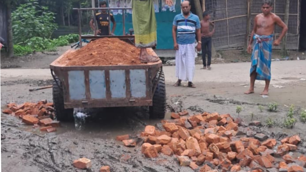 বৈলর বাঁশ কুড়িতে নিজ অর্থায়নে রাস্তাঘাট মেরামত করছেন আতাউর রহমান সোহেল খান