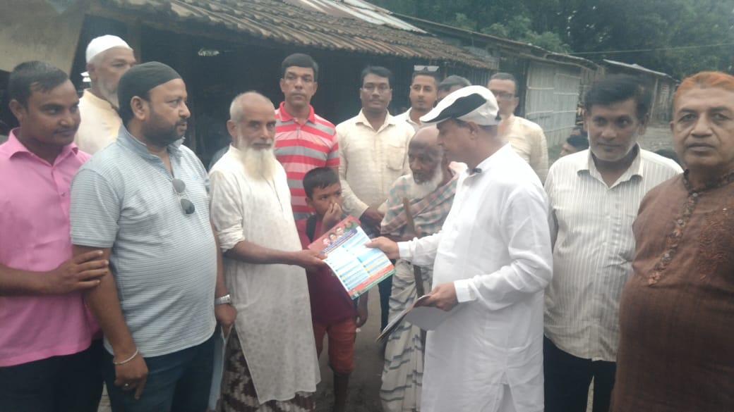 তারিক আহমেদ লিফলেট হাতে নিয়ে ভোটারদের দ্বারপ্রান্তে গিয়ে তাদেরকে বলেন, ভোটটা ধানের শীষে দিবেন। আপনাদের দাওয়াত দিয়ে গেলাম।