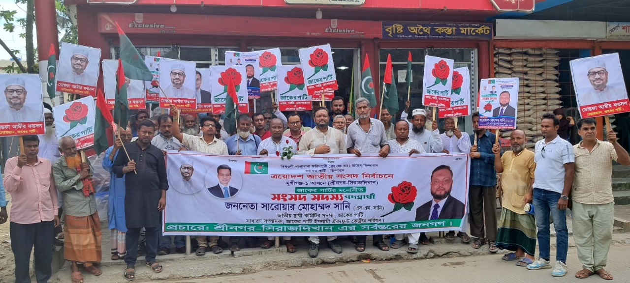 মুন্সীগঞ্জের সিরাজদিখানে জাকের পার্টির প্রার্থী সারোয়ার মোহাম্মদ সানির গণসংযোগ