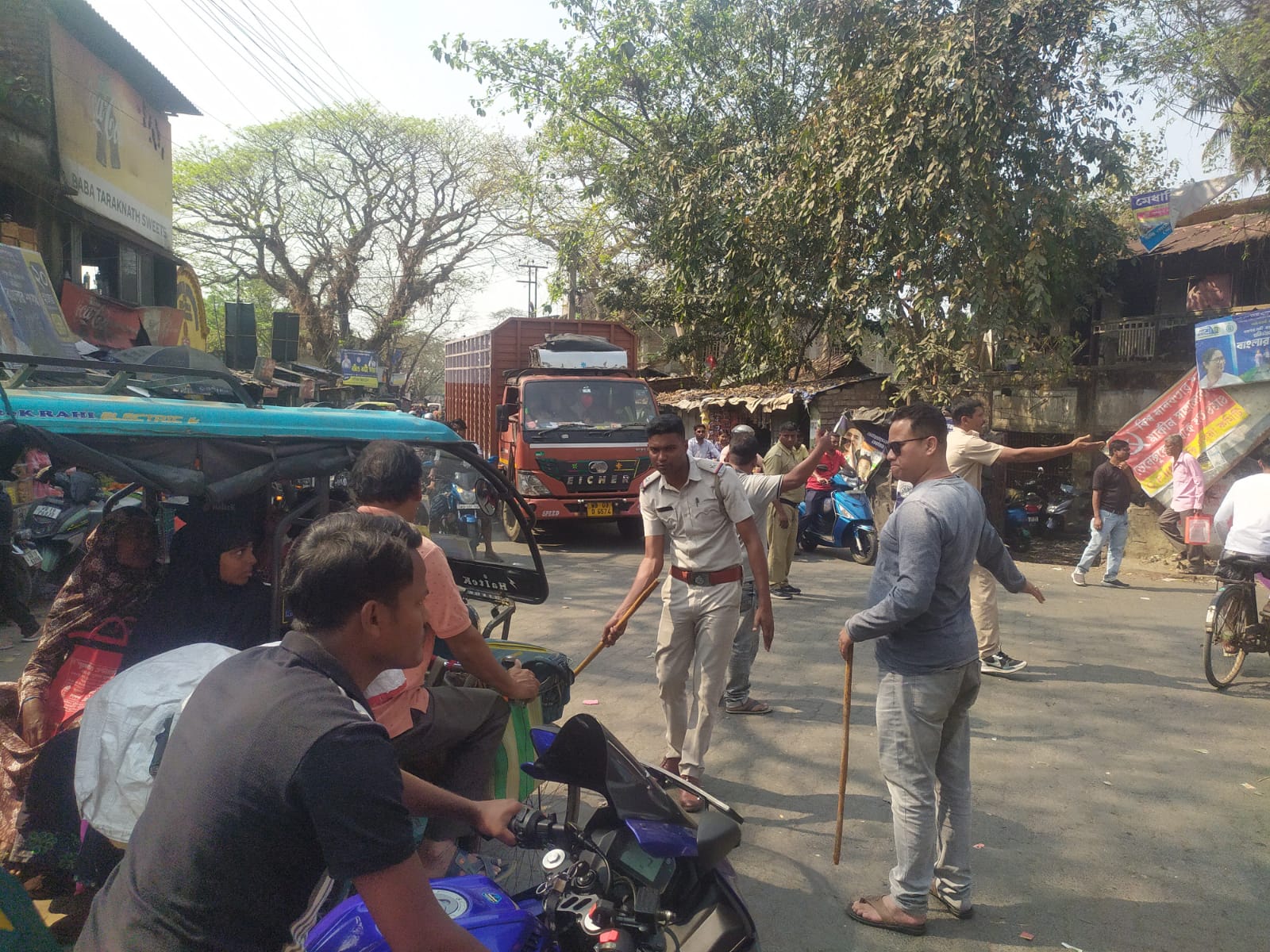 রমজান মাসে যানজট মুক্ত করতে রাস্তায় উস্তি থানার পদস্থ কর্মকর্তারা