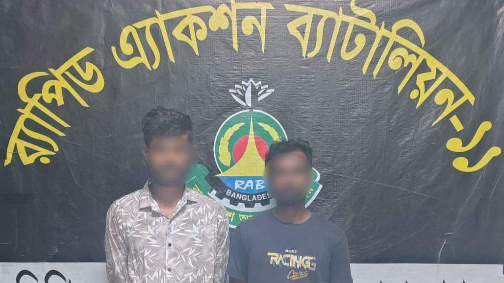 র্যাব সূত্রে জানা যায়, সোমবার (২৮ অক্টোবর ২০২৫) রাত ৯টা ২৫ মিনিটের দিকে গাজীপুর মহানগর পুলিশের পূবাইল থানাধীন মীরের বাজার এলাকায় এ অভিযান পরিচালনা করা হয়। অভিযানে আটক ব্যক্তিরা হলেন— মোঃ কুদ্দুস (৩৯), পিতা মৃত আলী আকবর, মাতা আমেনা বেগম, সাং রাজাবাড়ী কান্দি (জাকির হাটি), পোস্ট শাহবাজপুর, থানা সরাইল, জেলা ব্রাহ্মণবাড়িয়া; এবং মোঃ জুম্মান মিয়া (২৭), পিতা কালু মিয়া, মাতা জামেলা বেগম, সাং রাজাবাড়ী কান্দি (কালু মিয়ার বাড়ি), পোস্ট সাবাজপুর, থানা সরাইল, জেলা ব্রাহ্মণবাড়িয়া।