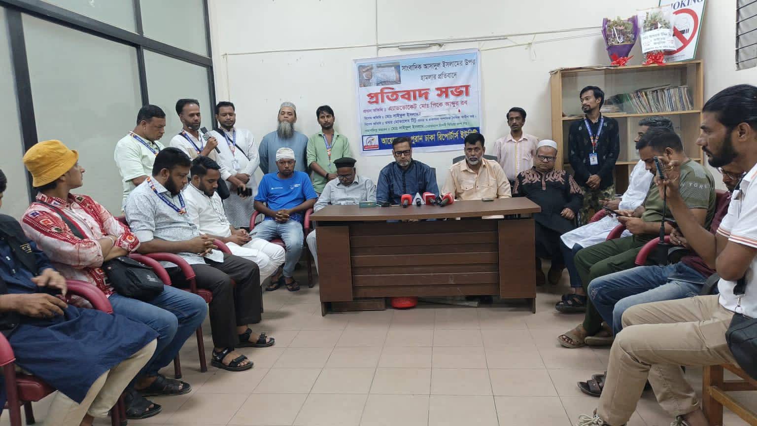 মোঃ আনোয়ার হোসেন: সাংবাদিক আসাদুল ইসলামের উপর সন্ত্রাসী হামলার প্রতিবাদে রাজধানীর সূত্রাপুরের জহির রায়হান সাংস্কৃতিক কেন্দ্রে পুরান ঢাকা রিপোর্টার্স ইউনিটির উদ্যোগে এক প্রতিবাদ সভা অনুষ্ঠিত হয়েছে। শুক্রবার সন্ধ্যায় অনুষ্ঠিত এ সভায় বিভিন্ন প্রিন্ট ও ইলেকট্রনিক মিডিয়ার সাংবাদিকরা উপস্থিত ছিলেন।