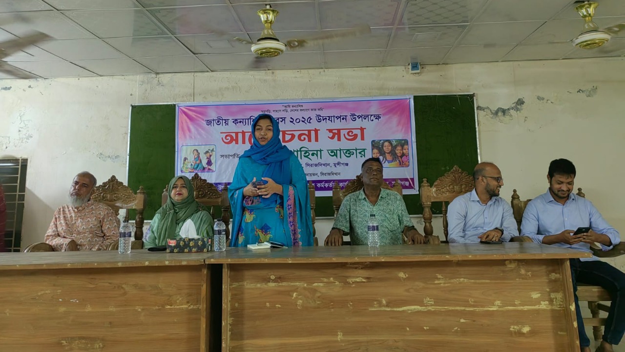 সিরাজদিখান উপজেলা মহিলা বিষয়ক কর্মকর্তা তুহিনা খাতুনের সভাপতিত্বে প্রধান অতিথির বক্তব্য রাখেন উপজেলা নির্বাহী কর্মকর্তা শাহিনা আক্তার। তিনি বলেন, দেশের সমৃদ্ধির জন্য সকলের সমান অংশগ্রহণ প্রয়োজন।স্মার্ট বাংলাদেশ বিনির্মাণে কন্যা শিশু আগামীর সমৃদ্ধ বাংলাদেশ গড়তে অগ্রণী ভূমিকা রাখবে। কন্যা শিশুর ভবিষ্যৎ অন্তরায় বাল্যবিবাহ প্রতিরোধে সবাইকে নিজ নিজ অবস্থান থেকে ভূমিকা রাখতে হবে।