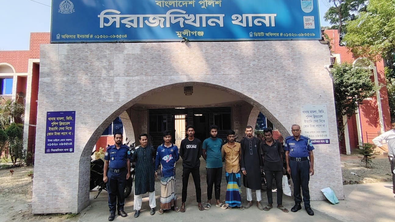 সিরাজদিখান (মুন্সীগঞ্জ) প্রতিনিধি: মুন্সীগঞ্জের সিরাজদিখান উপজেলাতে মাদকবিরোধী অভিযানে গিয়ে পুলিশের কাজে বাধা ও হামলার চেষ্টার ঘটনায় বৈষম্যবিরোধী ছাত্র আন্দোলনের সমন্বয়ক পরিচয়দানকারী এক ব্যক্তিসহ মোট আটজনকে গ্রেফতার করেছে পুলিশ।