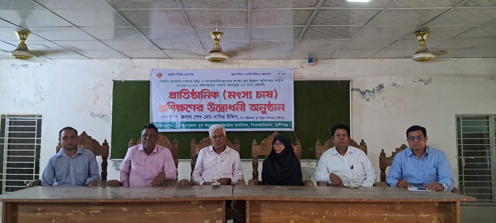 বেকার যুবকদের দক্ষতা বৃদ্ধি ও আত্মকর্মসংস্থানের লক্ষ্যে যুব উন্নয়ন অধিদপ্তর-এর উদ্যোগে ২০২৫-২৬ অর্থবছরের রাজস্ব খাতভুক্ত এক মাস মেয়াদী প্রাতিষ্ঠানিক (মৎস্য চাষ) প্রশিক্ষণের উদ্বোধন করা হয়েছে। সোমবার (০২ মার্চ) সকাল ১০টায় সিরাজদিখান উপজেলা পুরাতন সম্মেলন কক্ষে আয়োজিত অনুষ্ঠানের মাধ্যমে এ কর্মশালার সূচনা হয়।